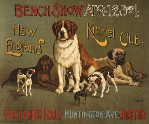DOG Show, Boston, New England Kennel Club, Blood Hound, Spaniel, Jack Russell Terrier, Mastiff, Bull Dog, Yorkshire Terrier, St. Bernard 12" X 16" Image Size Vintage Poster Reproduction Review